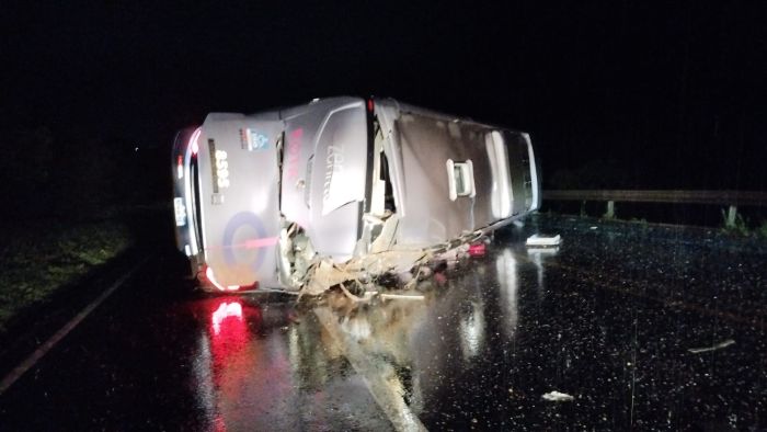 Dezesseis pessoas ficaram feridas após o ônibus que elas estavam tombar na BR-116, no trecho entre os municípios de Milagres e Jequié, no sudoeste da Bahia. De acordo com a Polícia Rodoviária Federal (PRF), o acidente aconteceu na madrugada desta segunda-feira (23).