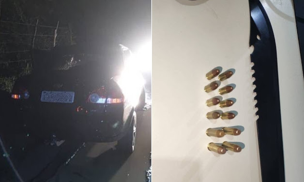 De acordo com o registro policial, a guarnição da CETO/1º Pel (Viatura 8.1662) foi acionada via CICOM após o motorista, de 24 anos, ligar para o 190 informando a situação. Durante rondas, os policiais localizaram o veículo abandonado com diversas perfurações na lataria. No interior do carro foram encontradas 8 munições calibre 9mm, 4 munições calibre 38, um municiador de pistola e um facão.