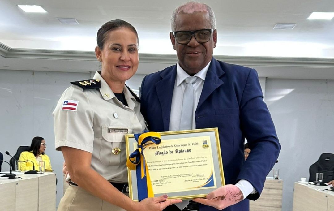 Durante a sessão, foi concedida Moção de Aplausos à oficiala, em reconhecimento à sua trajetória, liderança e relevantes serviços prestados à segurança pública na região, à frente do 16º BPM, destacando sua atuação firme, ética e comprometida com a comunidade.