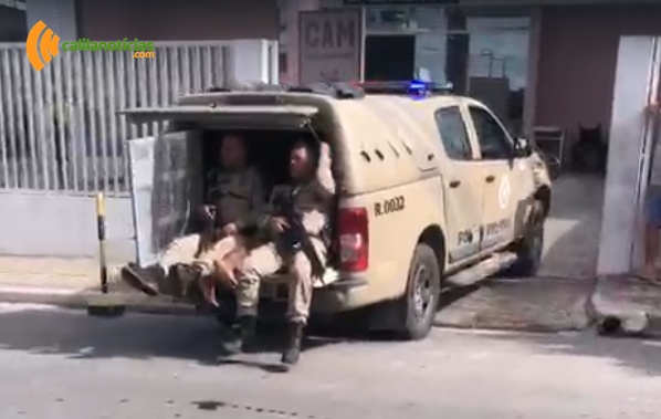 Uma imagem registrada por um internauta mostra a viatura conduzido um corpo do policial para o Hospital Municipal de Santaluz,