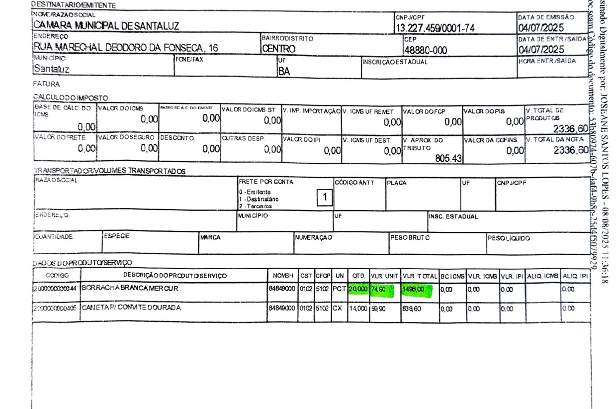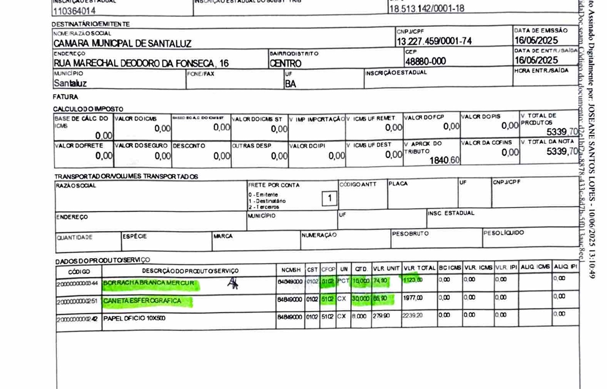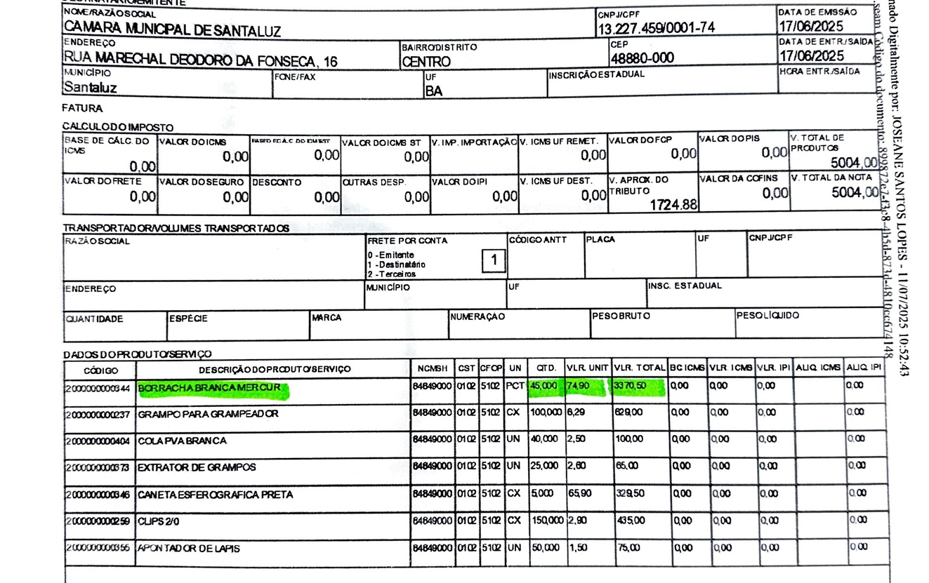 Território do Sisal – Após a repercussão envolvendo os gastos com água mineral na Câmara Municipal de Santaluz, novas informações encaminhadas à redação apontam para despesas relacionadas à aquisição de borrachas escolares.