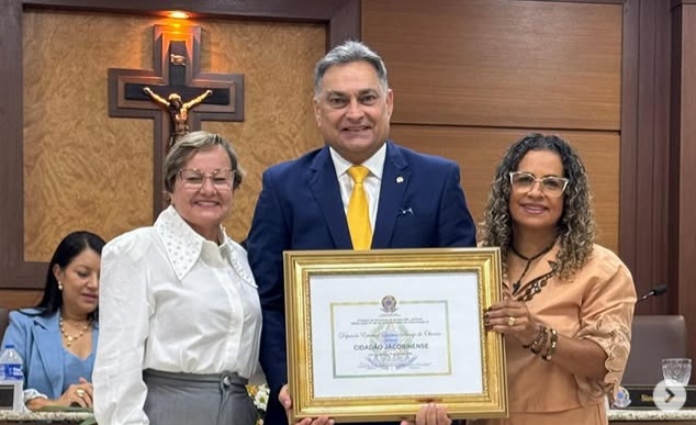 “Hoje recebi, com muita alegria e gratidão, o honroso título de cidadão jacobinense, um reconhecimento que me emociona e fortalece ainda mais o meu compromisso com esse município. Agradeço de coração ao povo de Jacobina, à prefeita Valdice Castro , à vereadora Simone Souza , proponente desse título, e aos vereadores da Casa pela aprovação unânime. Podem ter a certeza de que honrarei esse título com muito trabalho, respeito e responsabilidade, seguindo firme na missão de contribuir cada vez mais com Jacobina.”Escreveu o deputado em rede social