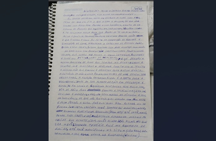 O documento, cuja autoria ainda não foi oficialmente confirmada, é atribuído ao policial militar George Henrique Novaes Souza e está sendo submetido à perícia técnica. O conteúdo tem sido analisado com o objetivo de esclarecer o contexto em que foi escrito e sua possível relação com o ocorrido.