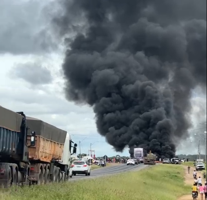 Moradores de Nova Fátima protestam e fecham a BR-324 pedindo justiça por morte de cinco jovens
