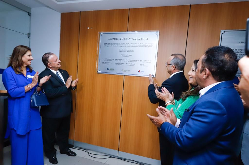 No Dia Mundial do Meio Ambiente, o presidente da Assembleia Legislativa da Bahia – ALBA, deputado Adolfo Menezes, inaugurou nesta segunda-feira (05), com a participação do diretor-presidente da Neoenergia Coelba, Luiz Antônio Ciarlini, e de deputados e servidores, o Sistema Solar Fotovoltaico da ALBA, com energia renovável e limpa, com respeito ao meio ambiente e sustentabilidade, além de uma economia anual de R$ 130 mil com a conta de energia. Todo o investimento de R$ 904 mil, com placas e troca de 4.957 lâmpadas fluorescentes por outras, de LED, foi feito pela Neoenergia Coelba, dentro do seu programa de eficiência energética, regulado pela ANEEL.